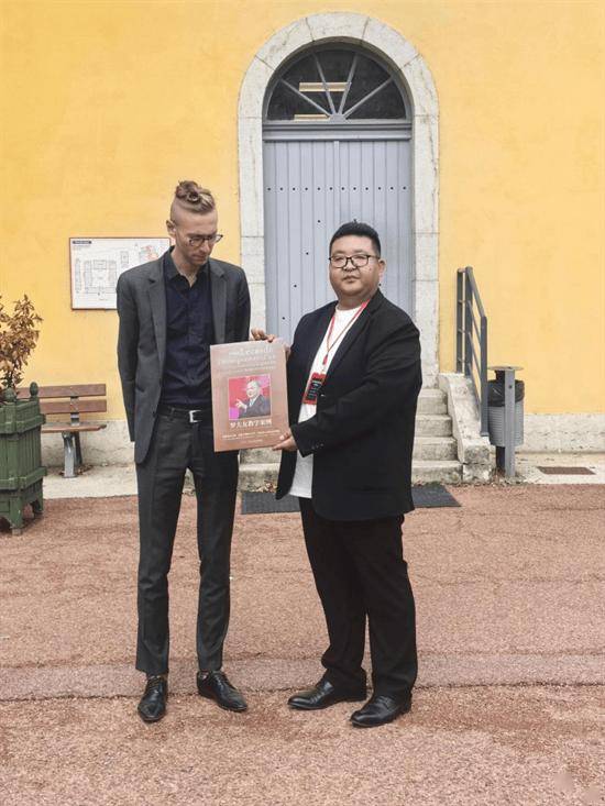 法国巴黎文理研究大学国际合作主管、教授:艾米丽·埃蒙德教授(Ms.Emilie.Emond)和罗大友院长教材合影留念